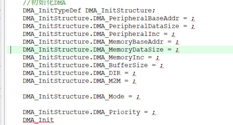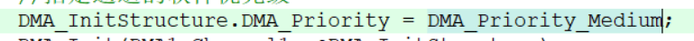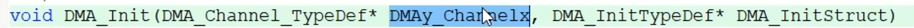 在DMA_Init处进行跳转。第一个参数y选择DMA1或2用来确定是哪个DMA。x可以是1-7对于DMA1来说。或者是1-5对于DMA2来说。