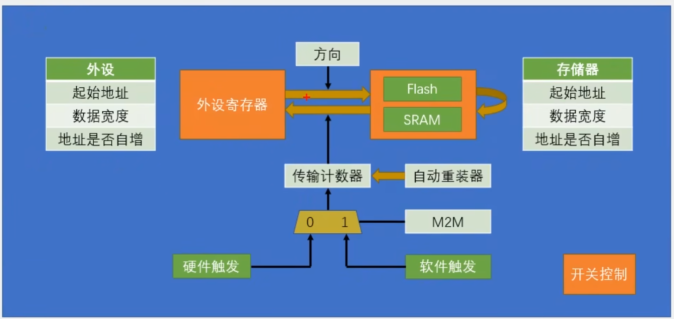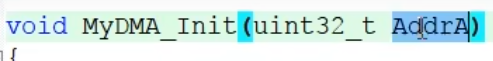 第一个参数,外设站点的基地址,要写一个32位的地址。对于SRAM的数组,他的地址是编译器分配的,并不是固定的。所以我们一般不会写地址,而是通过数组名来获取地址。这里我们就把地址提取成初始化函数的参数。这样在初始化的时候你想转运哪个数组就把哪个数组的地址传进来就可以了。