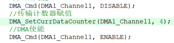 因为DMA也是正常的单数模式,所以再触发ADC之前,还需要重新写入一下传输计数器。
