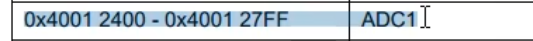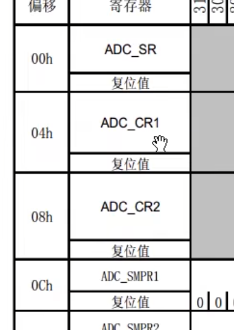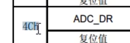 然后外设基地址0x4001 0000加上0x2400 = 0x4001 2400就是ADC1的基地址,现在基地址有了,但是基地址+偏移才是我们寄存器的地址。