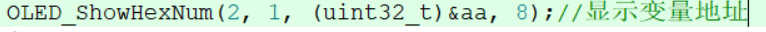 然后显示变量的地址,这里的取地址,应该存放在指针变量里,如果单纯要显示数字,要加上强制类型转换(uint32_t)如果不加强制类型转换那么就是指针跨级赋值,编译时候就会有警告。