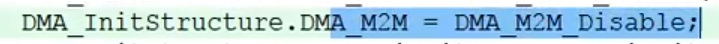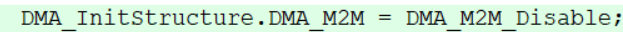 然后M2M要给到Disable不使用软件触发。我们需要硬件触发,触发源时ADC1,因为我们ADC每扫描完一个通道,DMA就会触发搬运一次。