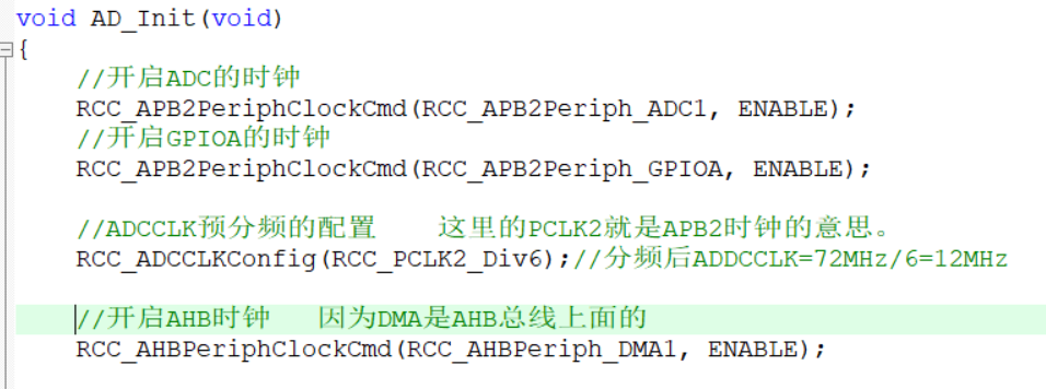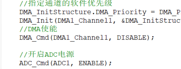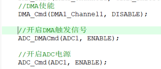 因为ADC还是单次模式,所以需要函数触发一下ADC开始。其他的就不需要了。