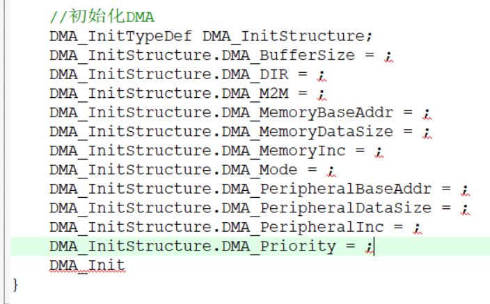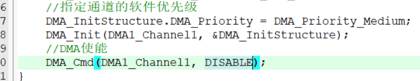 复制上一个DMA配置的程序,然后复制,粘贴到DMA使能之前。
