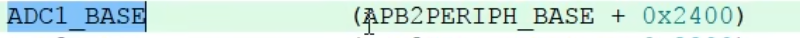 转到定义看一下,ADC1的基地址,就是APB2的基地址+0x2400。