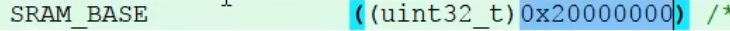 对照这个表我们就可以看到aa这个变量存储的位置是SRAM区。在SRAM区地址肯定是以0x2000开头的,0x表示十六进制。具体地址是由编译器决定的,目前SRAM区没有什么东西,所以编译器就把他放在了第一位。
