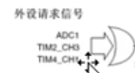 第二个条件触发源有信号,暂时不满足。因为这里是硬件触发,ADC还没有使能,不会有触发信号。所以DMA使能之后,不会立即工作。