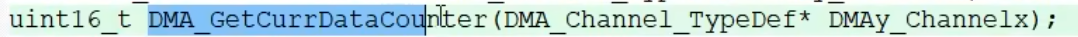 DMA获取当前数据寄存器。这个函数就是返回传输计数器的值。想看还有多少数据没有转运就可以调用这个函数。
