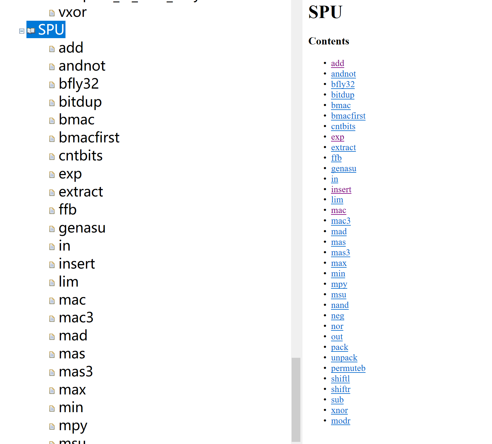 spu模块我自己总结就是重在构建程序逻辑,下边是详细的模块指令列表。
