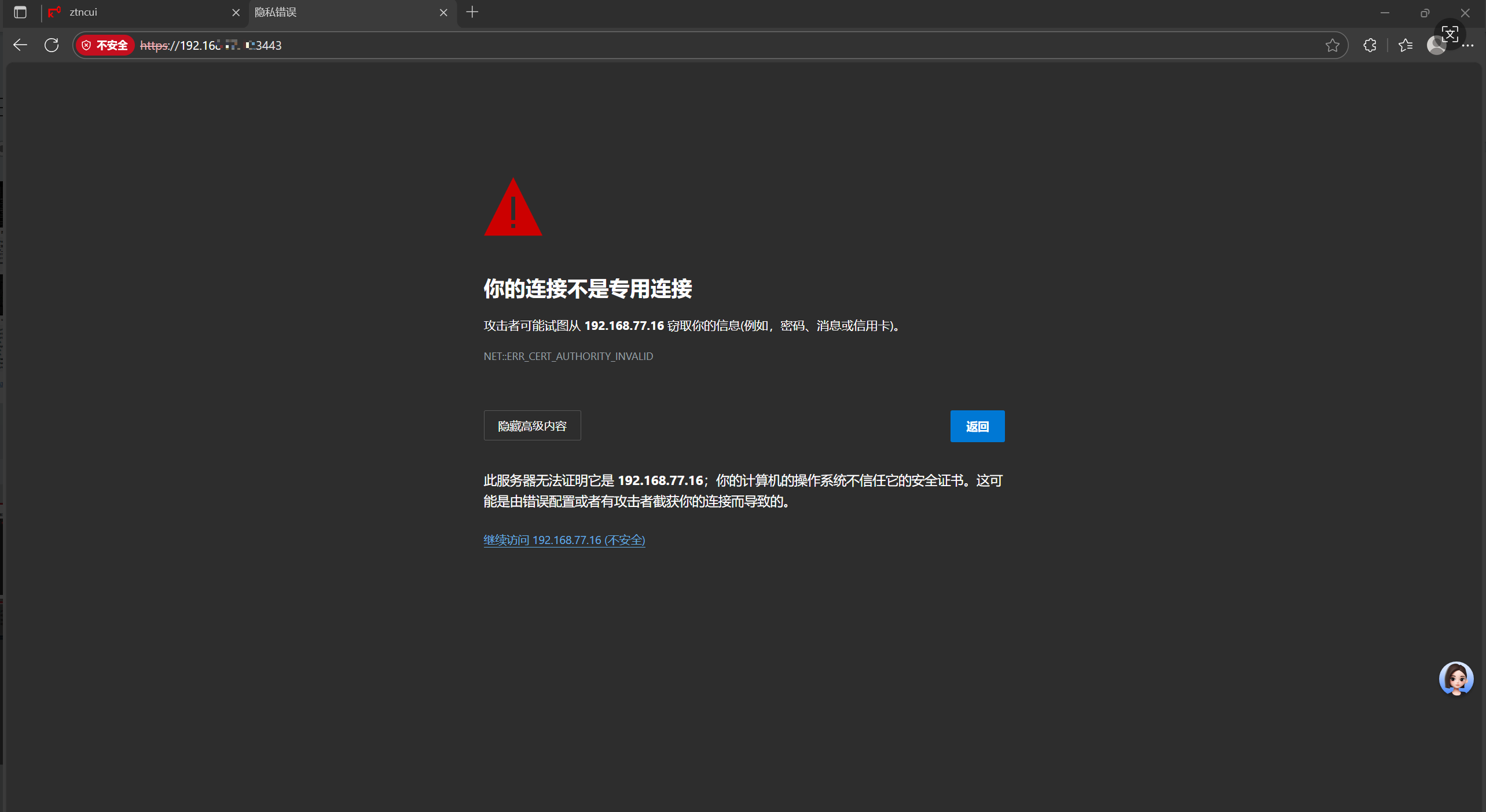 ##备注,此为未经授权https协议,需要浏览器进行登录验证