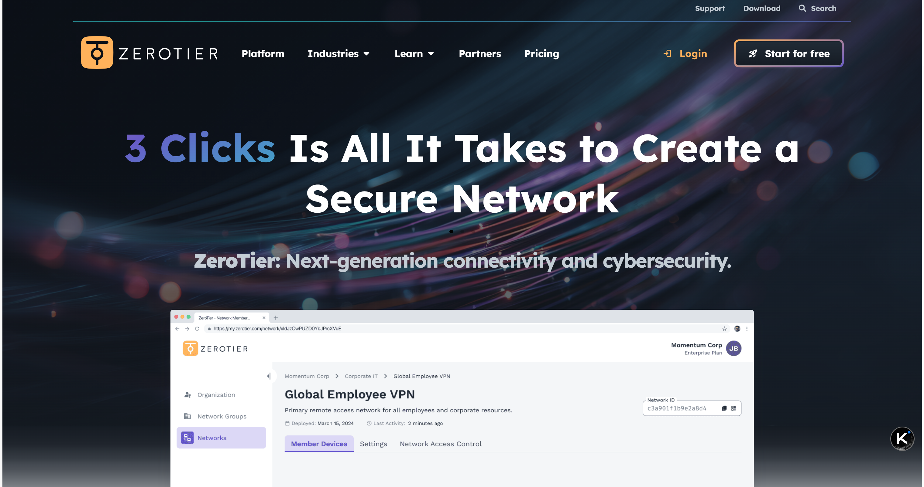 官网地址:ZeroTier | Next-Generation Connectivity and Cybersecurity
