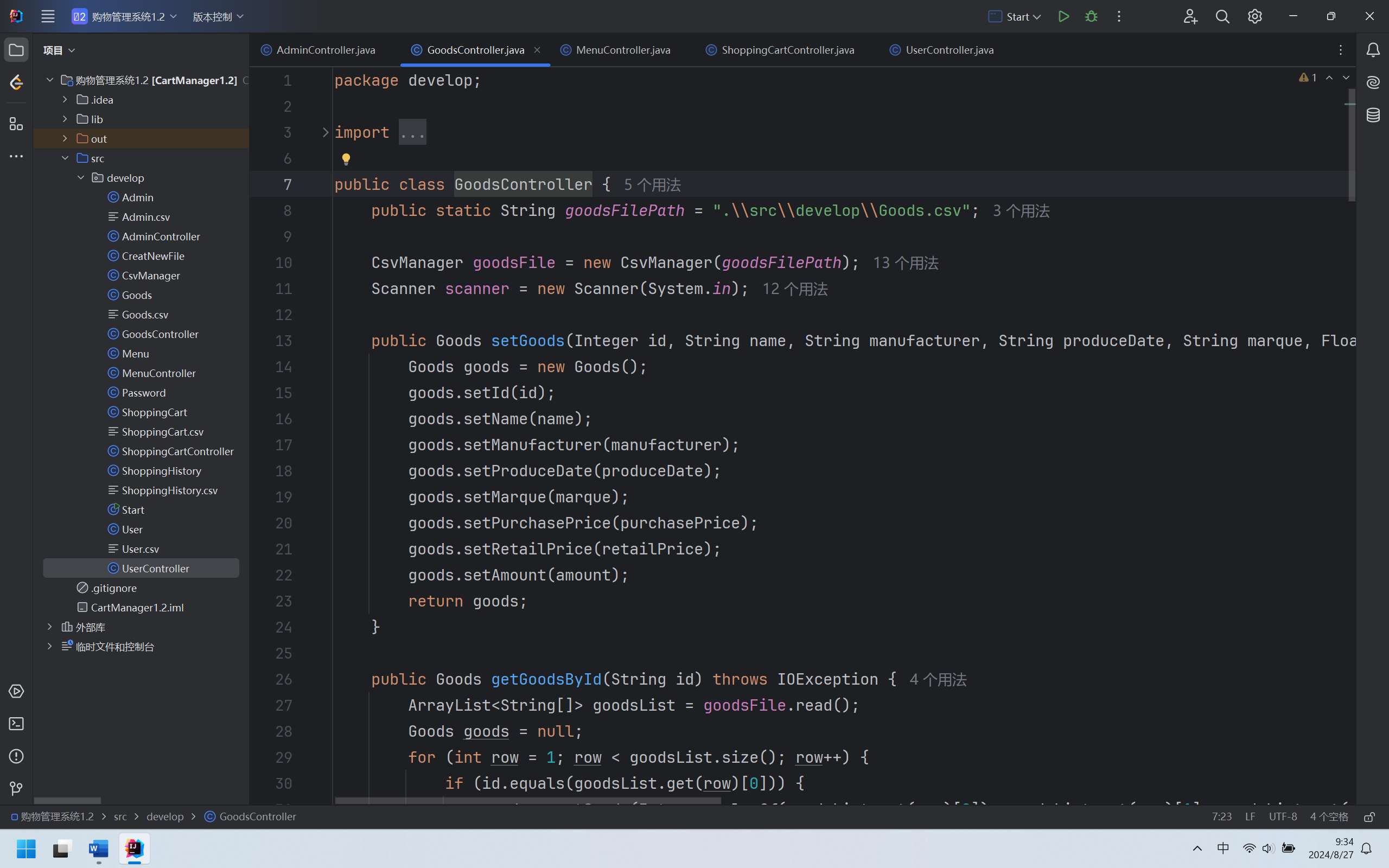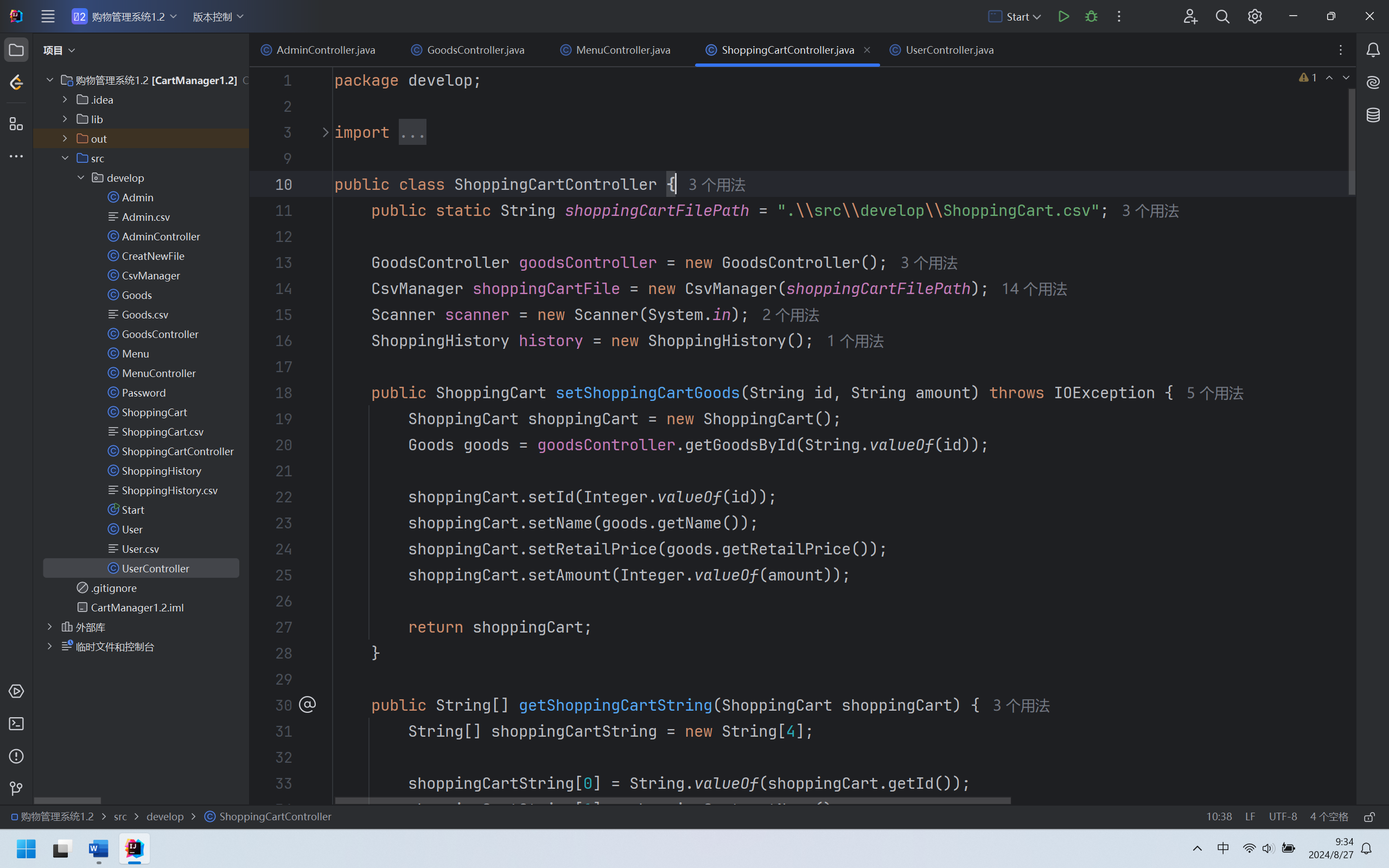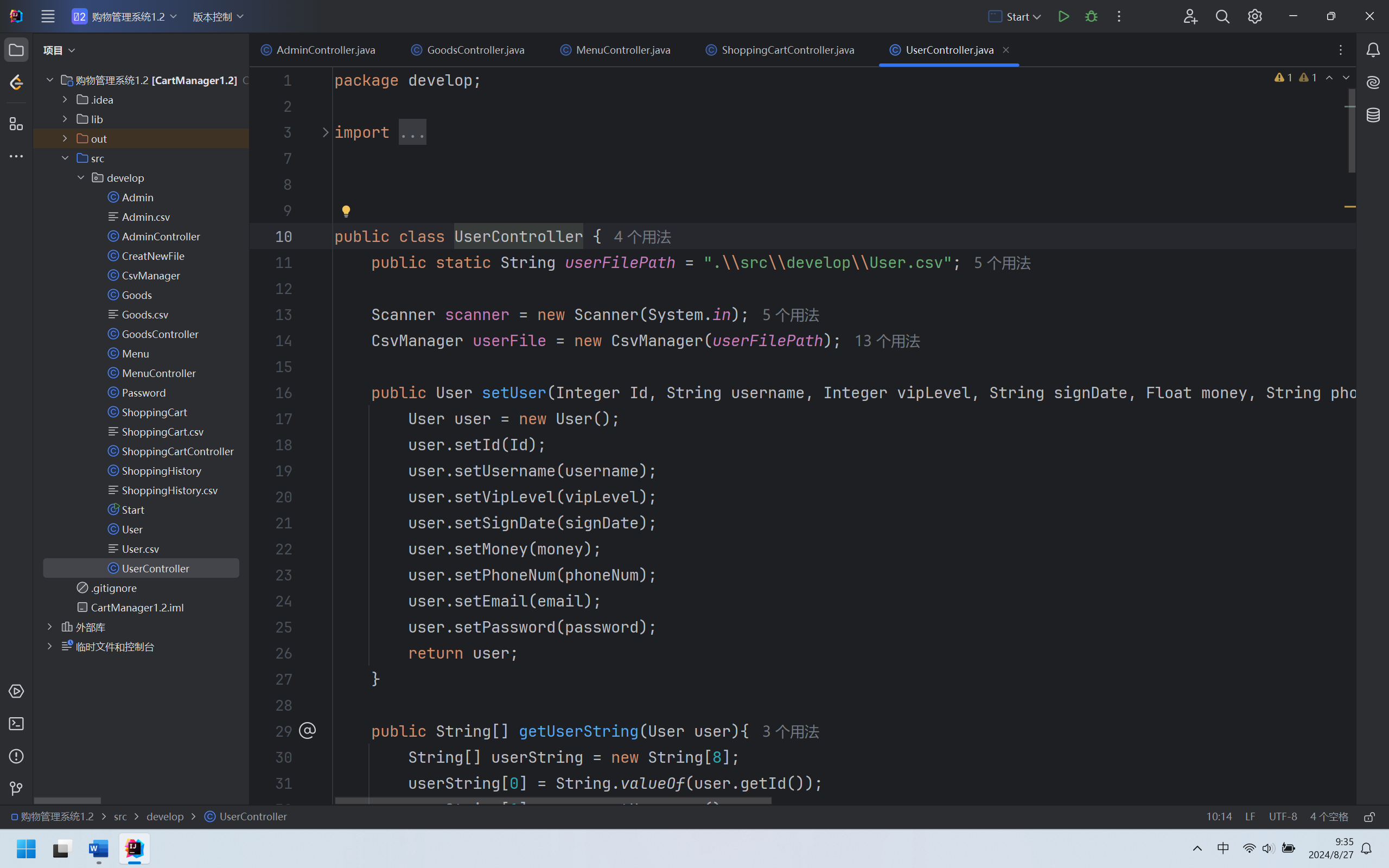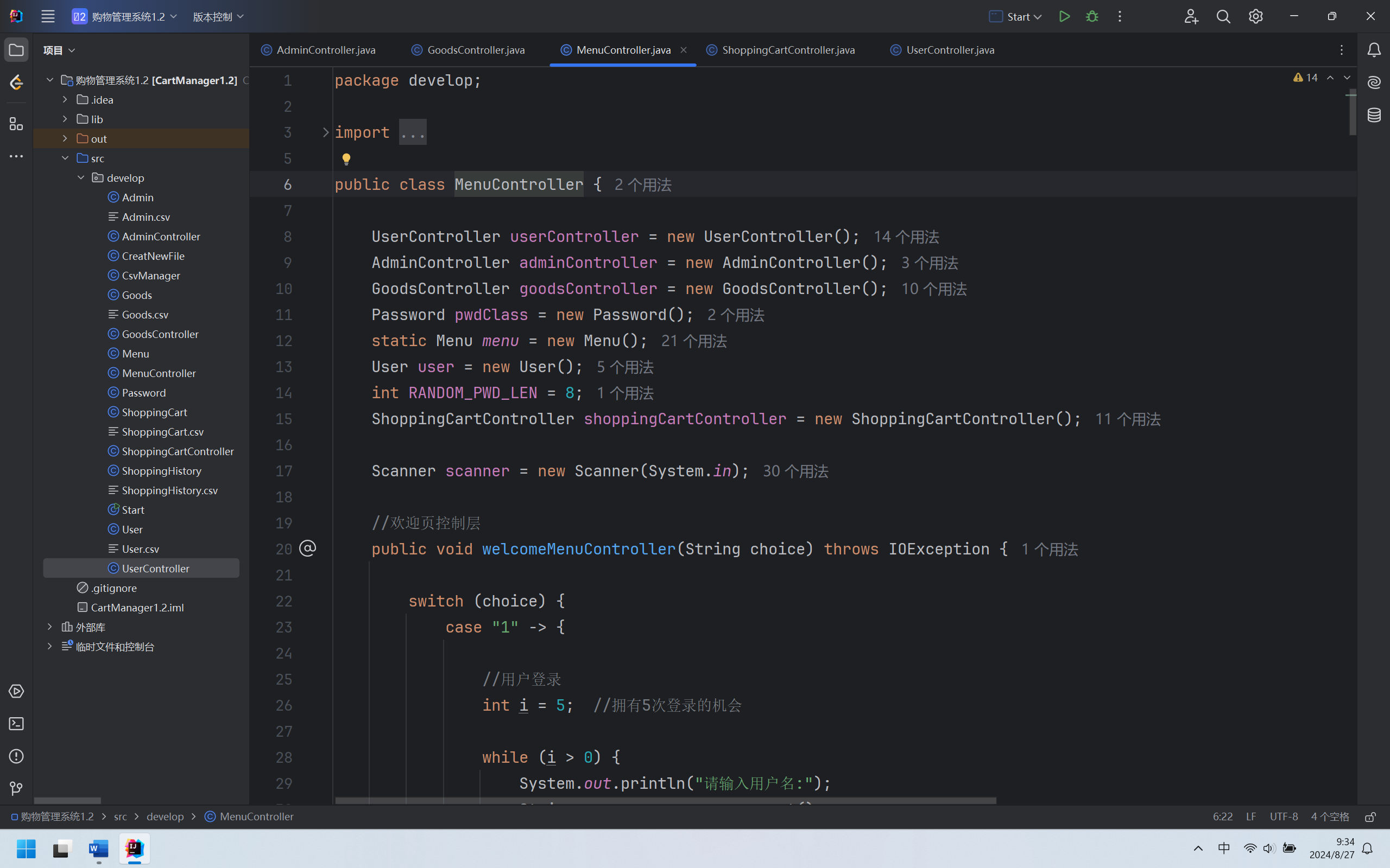 开发使用的代码编辑工具:IntelliJ IDEA 2024.1.4