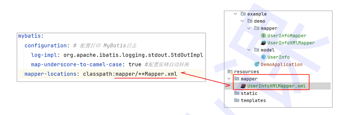 在application.yml文件中与UserInfoMapperXML.xml文件的路径对应。
