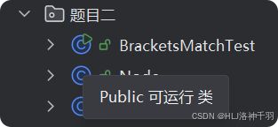 package 实验四.题目二;public class BracketsMatchTest {public static boolean isMatch(String str) {//建栈Stack chars = new Stack();//从左到右遍历字符串for (int i = 0; i < str.length(); i++) {String currChar = str.charAt(i) + "" ;//如果检测到左括号,压入栈中if (currChar.equals("(")) {chars.push(currChar);//如果检测到右括号,从栈中弹出一个左括号} else if (currChar.equals(")")) {String pop = chars.pop();if (pop == null) {return false;}}}//栈中是否有剩余的左括号if (chars.size() == 0){return true;}return false;}public static void main(String[] args) {String str = "({[]})" ;boolean match = isMatch(str);System.out.println(str + " 中的括号是否配对: "+"\t");System.out.println(match+"\t");}