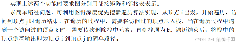 package 实验七.two;import java.util.*;public class GraphBfs {private Map<Integer, List<Integer>> adjList = new HashMap<>();//key是编号 value是邻居LinkedList<Integer> list = new LinkedList<>();/*** @description: 初始化图* @param: []* @return: void*/public void createGraph() {List<Integer> l1 = new LinkedList<>();l1.add(2);l1.add(3);List<Integer> l2 = new LinkedList<>();l2.add(4);l2.add(5);List<Integer> l3 = new LinkedList<>();l3.add(4);l3.add(6);List<Integer> l4 = new LinkedList<>();l4.add(5);List<Integer> l5 = new LinkedList<>();l5.add(6);List<Integer> l6 = new LinkedList<>();this.adjList.put(1, l1);this.adjList.put(2, l2);this.adjList.put(3, l3);this.adjList.put(4, l4);this.adjList.put(5, l5);this.adjList.put(6, l6);}/*** @description: 广度优先 寻找最短路径* @param: [startId, endId]* @return: void*/public void bfs(int startId, int endId) {Queue<Node> waitSearchQueue = new LinkedList<>();//等待被搜索的队列Map<Integer, Node> visitedList = new HashMap<>(); //访问过的节点列表waitSearchQueue.offer(new Node(startId, -1));//将开始节点入队while (!waitSearchQueue.isEmpty()) {//队列不空Node currentNode = waitSearchQueue.poll();//从队列头弹出System.out.println("当前目标:" + currentNode.id);if (currentNode.id == endId) {//如果找到了System.out.println("找到目标:" + currentNode.id);printPath(currentNode, visitedList); //打印出来路径return;}if (visitedList.containsKey(currentNode.id)) { //如果搜索过的就不第二次搜索了continue;}//将当前节点的邻居都入队for (int i = 0; i < this.adjList.get(currentNode.id).size(); i++) {int nodeId = this.adjList.get(currentNode.id).get(i);//如果访问过的就不用入队了。入队的话parentId就错了if (!visitedList.containsKey(nodeId)) {waitSearchQueue.offer(new Node(nodeId, currentNode.id));}}//标示当前节点访问过了visitedList.put(currentNode.id, currentNode);}System.out.println("没有路径");}/*** @description: 打印出路径* @param: [targetNode, visitList]* @return: void*/public void printPath(Node targetNode, Map<Integer, Node> visitList) {int parentId = targetNode.parentId;while (parentId != -1) {int id = visitList.get(parentId).id;parentId = visitList.get(parentId).parentId;list.add(id);}ListIterator<Integer> it = list.listIterator(list.size());while (it.hasPrevious()) {Object O = it.previous();System.out.print(O + "-->");}System.out.print(targetNode.id);}//每一个节点的抽象 这里只存储idstatic class Node {private final int id;private final int parentId;public Node(int id, int parentId) {this.id = id;this.parentId = parentId;}}public static void main(String[] args) {GraphBfs g = new GraphBfs();g.createGraph();g.bfs(1, 5);}