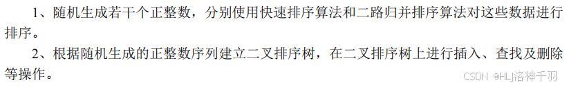 import java.util.Scanner;public class BinarySearchTreeOpts {static BinarySearchTree root;public static void main(String[] args) {System.out.println("************************");System.out.println("* 1—建立 *");System.out.println("* 2—输出 *");System.out.println("* 3—插入 *");System.out.println("* 4—查找 *");System.out.println("* 5—删除 *");System.out.println("* 0—退出 *");System.out.println("************************");while (true) {System.out.println("请选择:");Scanner scanner = new Scanner(System.in);int option = scanner.nextInt();switch (option) {case 1://建立Random random = new Random();int[] dataS = new int[7];for (int i = 0; i < 7; i++) {int randNum = random.nextInt(90) + 10;dataS[i] = randNum;}System.out.println("随机数据:" + Arrays.toString(dataS));for (int data : dataS) {insert(data);}break;case 2://输出System.out.println("中序遍历输出:");mid(root);System.out.println();break;case 3://插入System.out.println("请输入要插入的数据:");int in = scanner.nextInt();insert(in);break;case 4://查找System.out.println("请输入要查找的数据:");int fn = scanner.nextInt();find(fn);break;case 5://删除System.out.println("请输入要删除的数据:");int rn = scanner.nextInt();remove(rn);break;case 0://退出System.exit(0);default:System.out.println("请重新选择!");}}}//插入public static void insert(int data) {if (root == null) {root = new BinarySearchTree(data);return;}BinarySearchTree node = root;while (node != null) {if (data < node.getData()) {if (node.getLeft() == null) {node.setLeft(new BinarySearchTree(data));return;}node = node.getLeft();} else {if (node.getRight() == null) {node.setRight(new BinarySearchTree(data));return;}node = node.getRight();}}}//中序public static void mid(BinarySearchTree cur) {if (cur == null) {return;}mid(cur.getLeft());System.out.print(cur.getData() + " ");mid(cur.getRight());}//查找public static void find(int data) {BinarySearchTree node = root;while (node != null) {if (data < node.getData()) {node = node.getLeft();} else if (data > node.getData()) {node = node.getRight();} else {System.out.println("找到数据!");return;}}System.out.println("没找到数据!");}//删除public static void remove(int data) {BinarySearchTree node = root;BinarySearchTree parent = null;//查找要删除的结点,并且记录其父节点while (node != null && node.getData() != data) {parent = node;if (data < node.getData()) {node = node.getLeft();} else {node = node.getRight();}}if (node == null) {return;}//找到该节点//删除的节点有两个子结点if (node.getLeft() != null && node.getRight() != null) {//找最小的节点BinarySearchTree minNode = node.getRight();BinarySearchTree minNodeParent = node;while (minNode.getLeft() != null) {minNodeParent = minNode;minNode = minNode.getLeft();//找最小节点}node.setData(minNode.getData());//节点转换节点,删除实际数据node = minNode;//真正要删除的节点parent = minNodeParent;}//删除结点BinarySearchTree child = null;if (node.getLeft() != null) {child = node.getLeft();} else if (node.getRight() != null) {child = node.getRight();} else {child = null;}if (parent == null) {//删除根节点,并且根节点没有右子树root = child;} else if (parent.getLeft() == node) {parent.setLeft(child);} else if (parent.getRight() == node) {parent.setRight(child);}}}