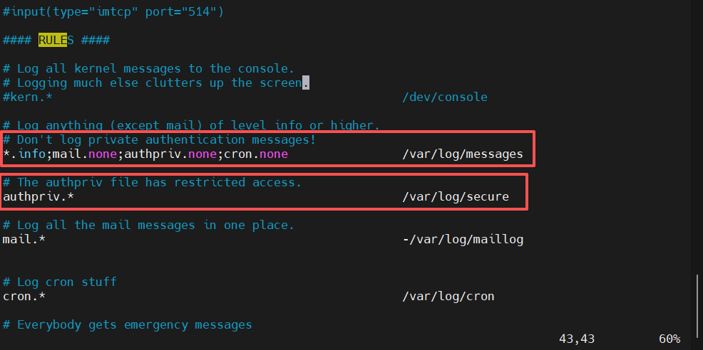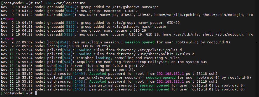 记录验证和授权方面的信息,只要涉及账户和密码的程序都会记录。比如说系统的登录,ssh 的登录,su 切换用户,sudo 授权,甚至添加用户和修改用户密码都会记录在这个日志文件中。