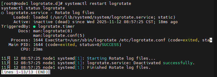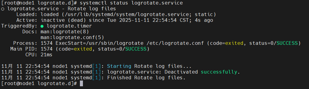 到此处 就已经配置完成, 我们的日志会按照配置的方案定时的进行轮替操作