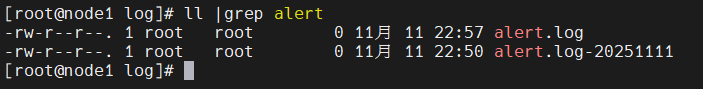 - 测试二: 观察新的alert.log文件, 是否存在 a属性