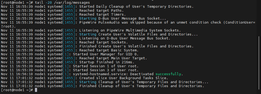 -f:将日志写入指定的文件(file),而不是默认的系统日志文件。