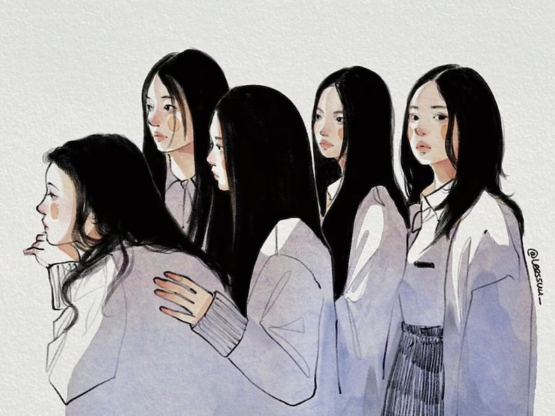 创作时按 “打稿 - 塑形 - 细化 - 晕染” 的步骤选择画笔,能让画面逻辑更清晰。先用 6B Pencil Line 打稿,确定主体的动态和轮廓;再用 HB Pencil Shade 铺阴影,塑造体积感;接着用 6B Hair、Dip Pen 细化头发、五官等细节;最后用 Water Submerge 做局部晕染,增加画面柔和度。我画那幅五个女孩的群像插画时,就是按这个流程操作,人物层次分明,质感也更突出。