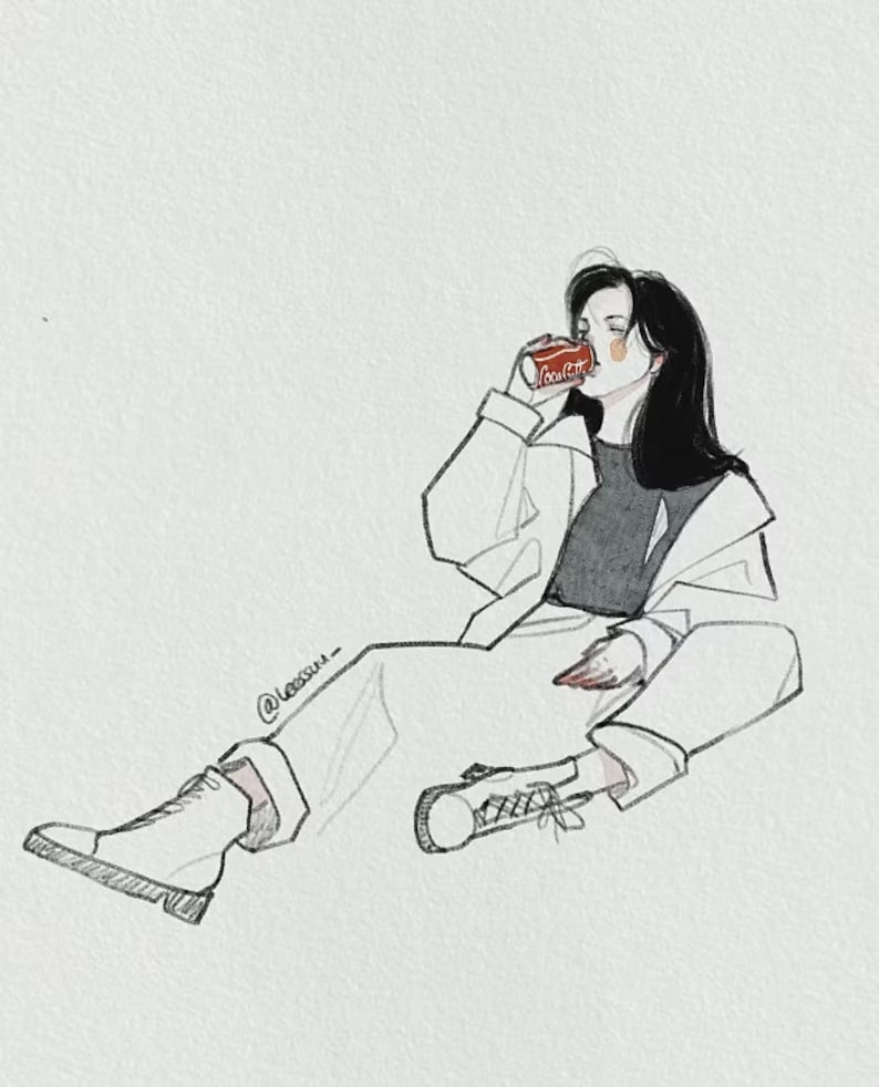 不管是铺色还是画阴影,都可以通过调节画笔不透明度来实现渐变效果。比如用 HB Pencil Shade 画阴影时,先调至 30% 不透明度铺一层浅灰,再调至 60% 不透明度加深暗部,最后用 10% 不透明度做过渡,这样阴影会更自然。画喝可乐的女孩时,我用这个方法给衣服画阴影,褶皱的立体感和渐变效果都很逼真。