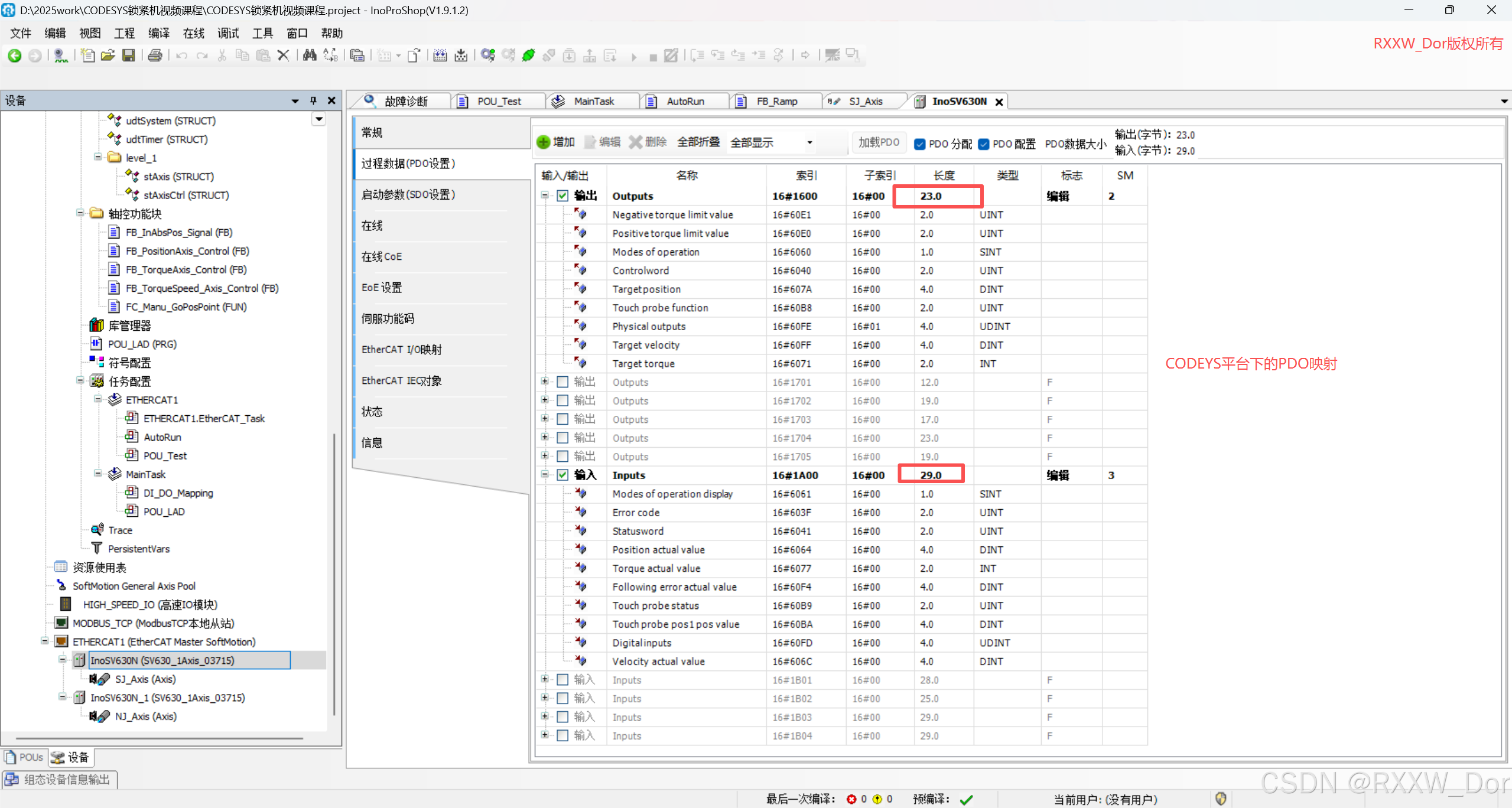 图中显示的是 PDO 映射的配置表,其中的 “数据大小累加” 是逻辑上的参数映射总和,并非实际单帧传输的字节数。例如: