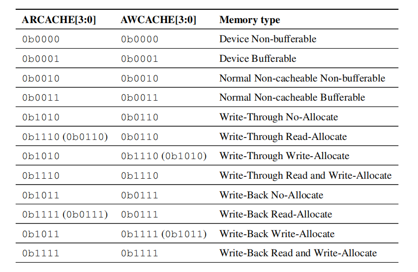 Write-Back的更复杂的一致性协议(如MESI),但AxCACHE信号为启动这些协议提供了最初的线索(例如,一个Write-Back的读请求可能会触发一个“共享”探测)。