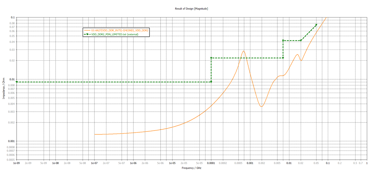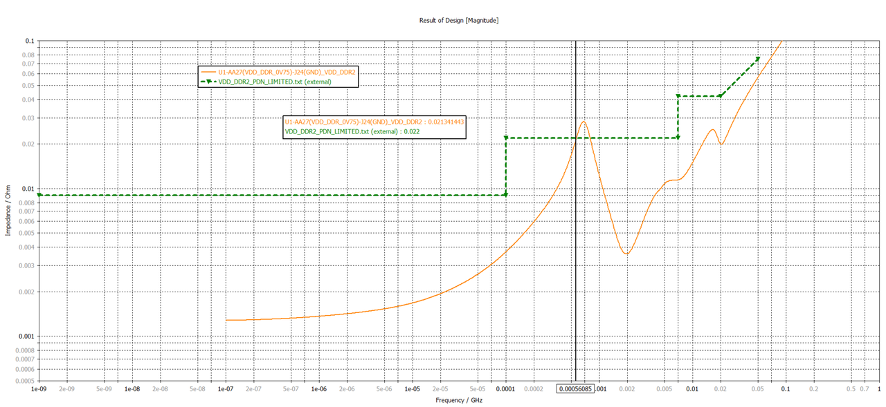 二,VDD_DDR2的电源网络PDN的仿真结果如下所示: