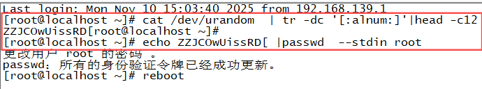 [root@localhost ~]# echo ZZJCOwUissRD[ |passwd --stdin root #设置为root密码