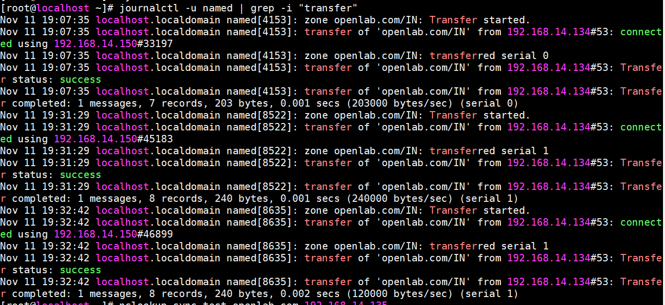 使用: journalctl -u named | grep -i "transfer" 可定向查看链接的反馈