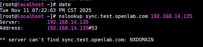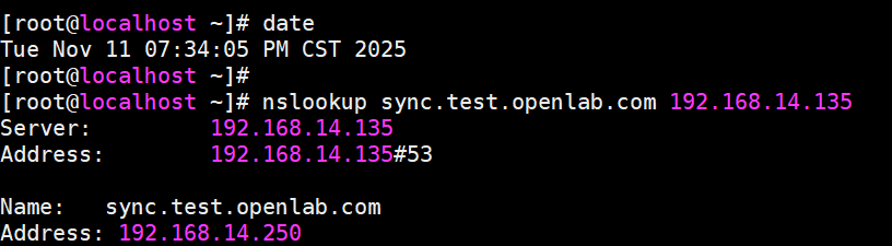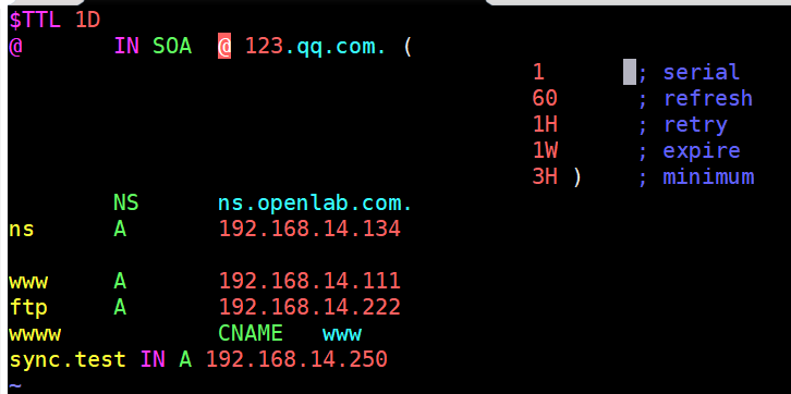添加sync.test IN A 192.168.14.250,可以更直观看出区别