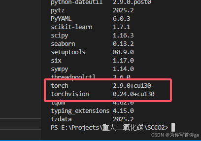 在控制台输入命令pip list查看安装pytorch版本,版本一定要 版本号+cuda版本号(cuda版本号与自己电脑保持一致)