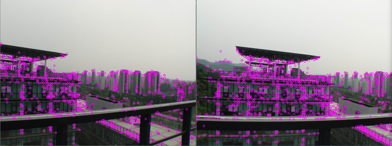 img_with_kp2 = cv2.drawKeypoints(img2, kp2, None, color=(255, 0, 255))# 拼接显示