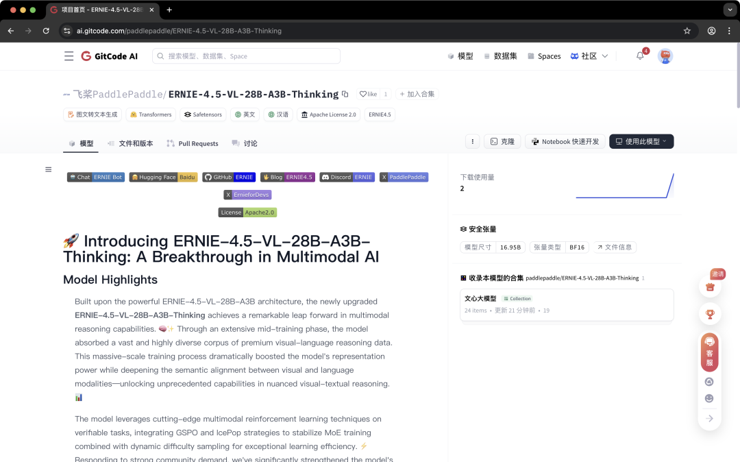 ERNIE-4.5-VL-28B-A3B-Thinking 模型在 GitCode 发布并开源,开发者可访问 GitCode 平台免费体验。