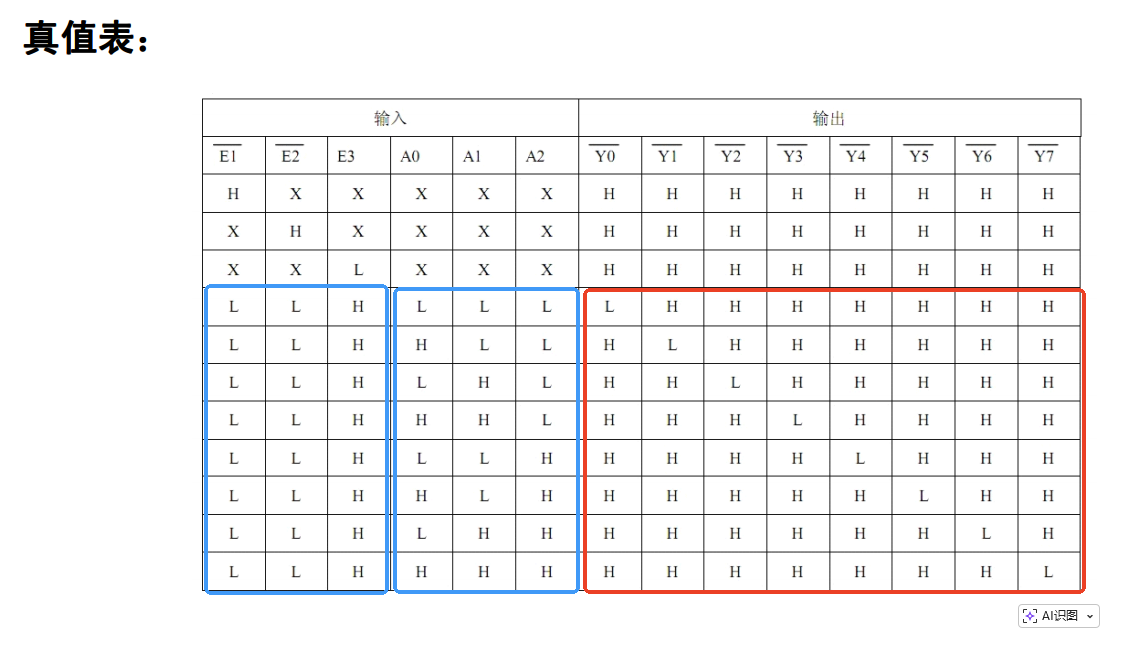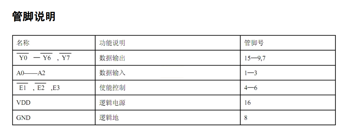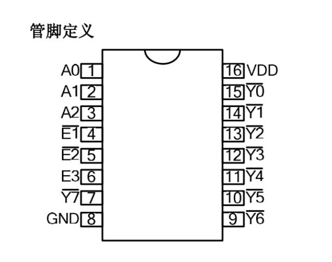 它通过3个输入引脚(A0, A1, A2)的二进制组合,来选择8个输出引脚(Y0~Y7)中的一个输出有效电平(通常是低电平),从而选中对应的数码管。