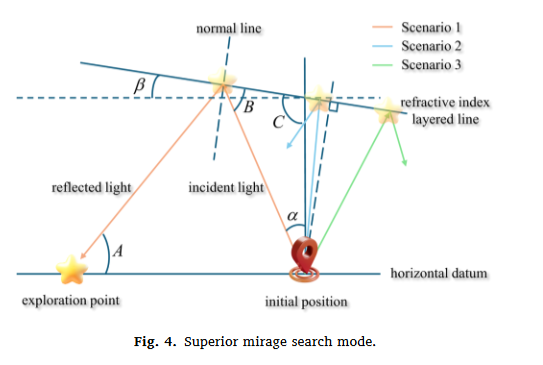 - 上蜃景:上层空气热、下层冷,折射率上小下大,能看到远处物体的虚像→对应算法 “全局探索”,扩大搜索范围,避免陷入局部最优。