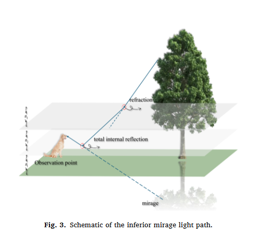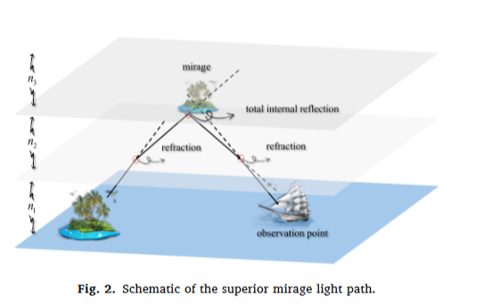 先搞懂核心灵感:海市蜃楼是太阳加热地面形成温度梯度,导致大气密度分层、折射率差异,光线折射后形成的虚拟图像。算法据此拆分出两大核心策略: