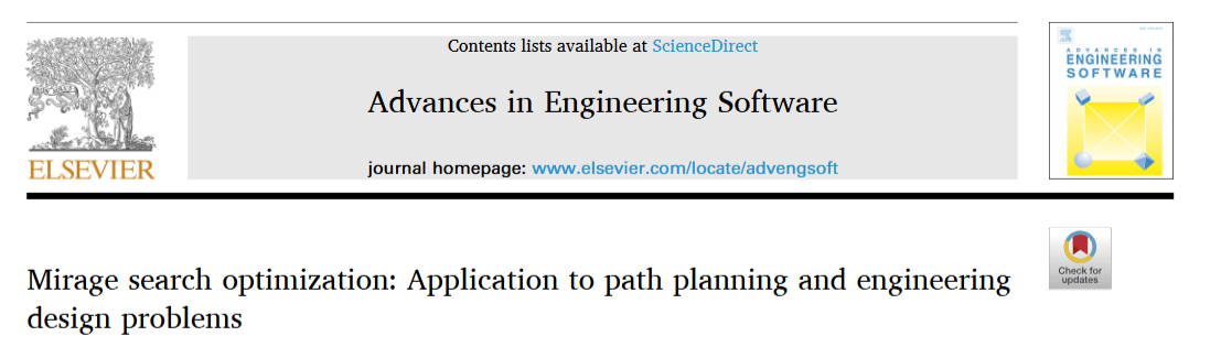 Keywords: Meta-heuristic; Mirage search optimization; Benchmark function; Engineering design; Path planning