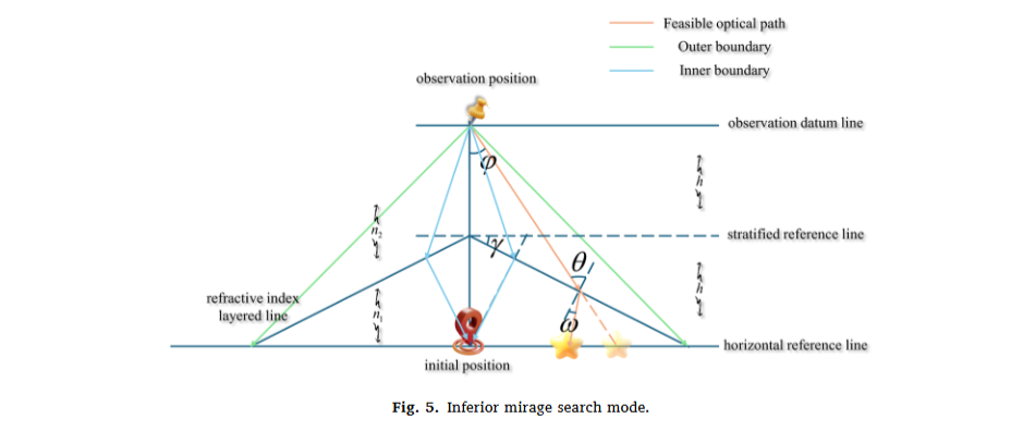 - 下蜃景:上层空气冷、下层热,折射率上大下小,能看到物体的放大虚像→对应算法 “局部开发”,在优质区域精细搜索,提升解的精度。
