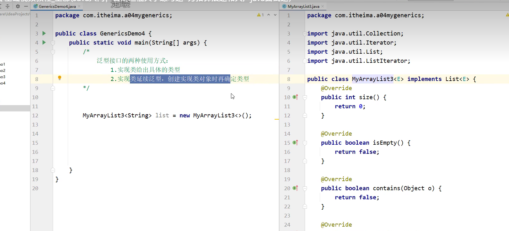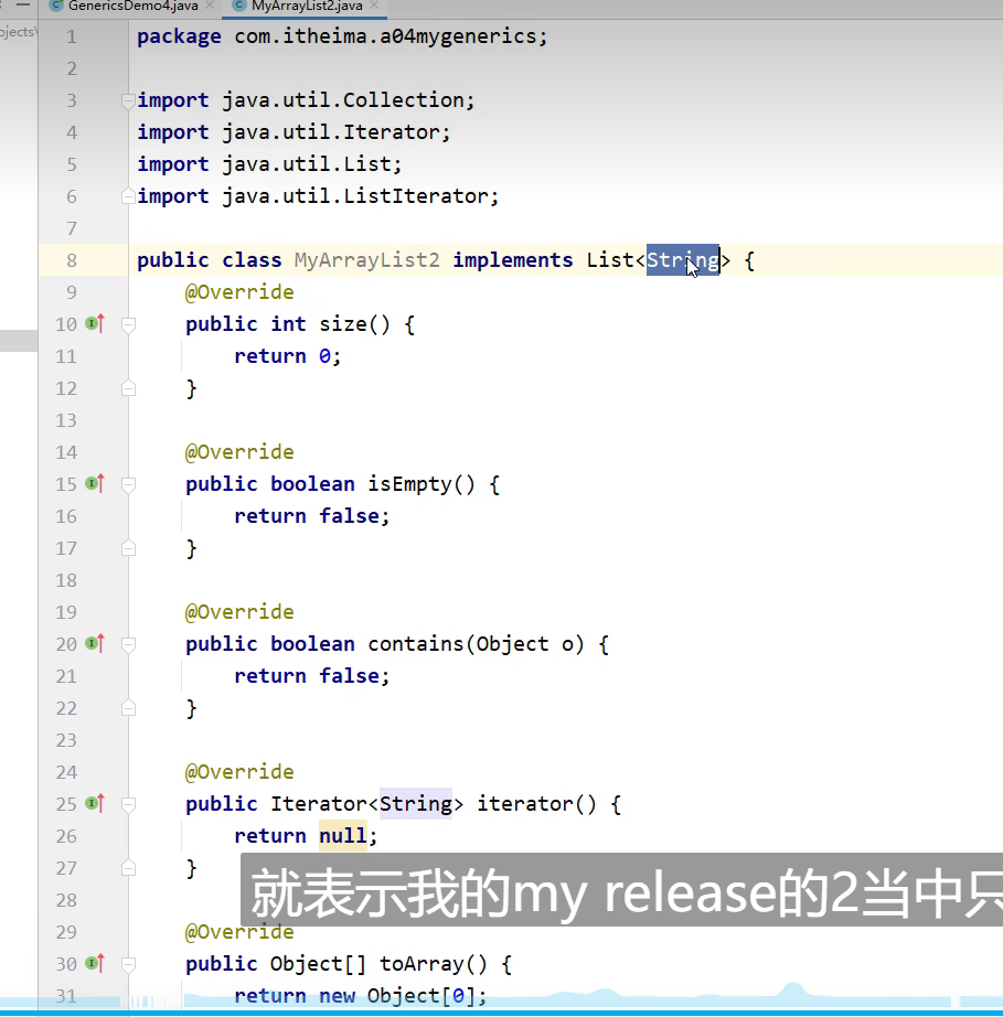 public class Myttest {static void main() {MyArrayList<String> list = new MyArrayList<>();list.add("aaa");list.add("bbb");System.out.println(list);MyArrayList<Integer> list2 = new MyArrayList<>();list2.add(1);list2.add(2);System.out.println(list2);}