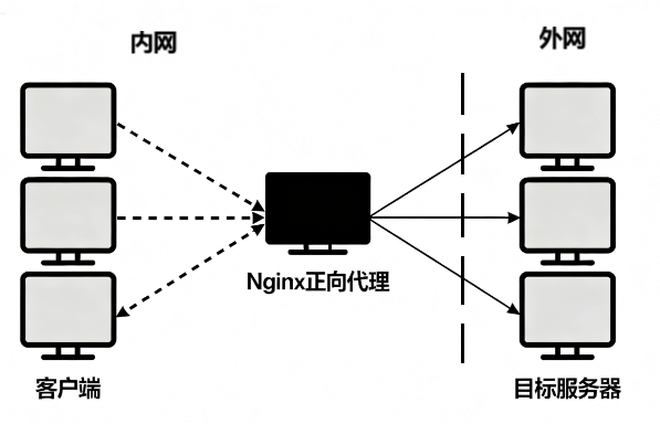 正向代理是位于客户端与目标服务器之间的代理服务器,客户端通过代理服务器间接访问目标服务器,目标服务器仅知晓代理服务器,不知真实客户端