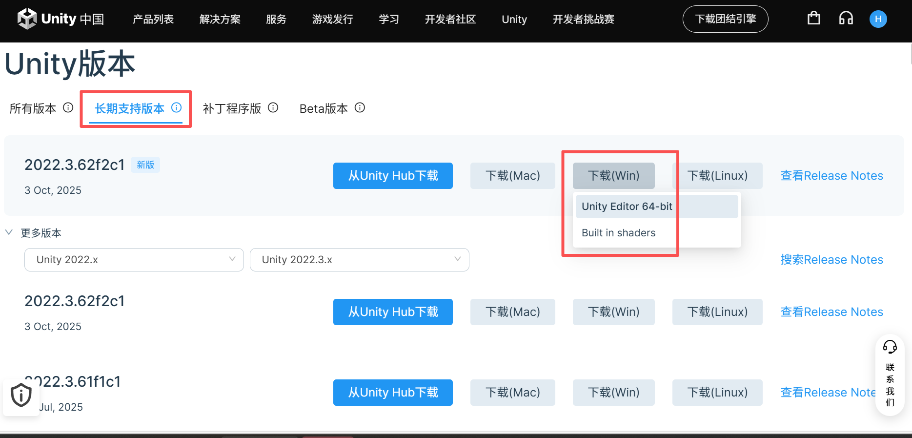 1 还是通过如下连接,进入Unity中国官方界面,往下翻到Unity版本,点击长期支持的版本,选择你要下载的版本。