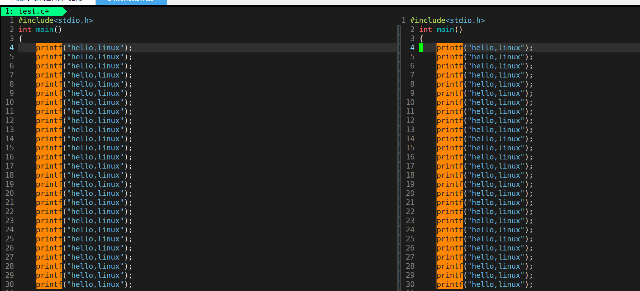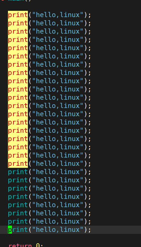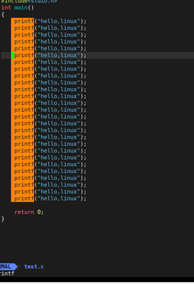 (8)n + yy :复制光标当前所在的n行(如下图)输入2 + yy (复制俩行)