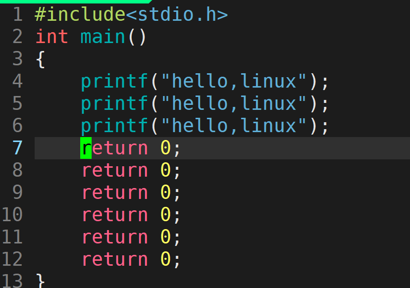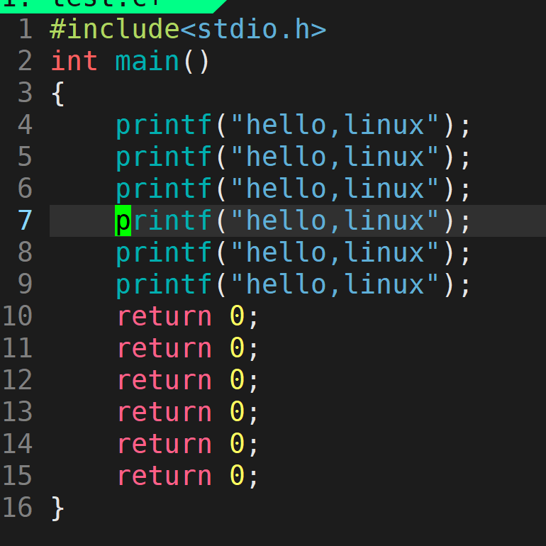(2)gg:文本回到最开始(我们这里按顺序操作,在上一步完成之后,在此基础上,我们继续操作)