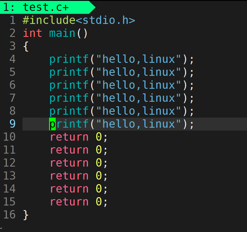 (3)n(任意数字)+ shift + g 定位到任意n行。(这里我们输入的是3 + shift + g)