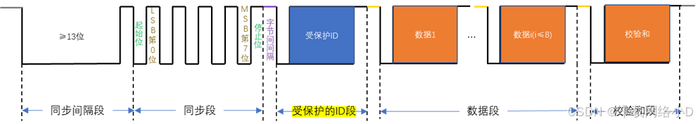 - 增强型校验和: 对标识符段和数据段的内容一同进行计算(LIN 2.0及以上)。这是目前的主流方式,提供了更好的保护。