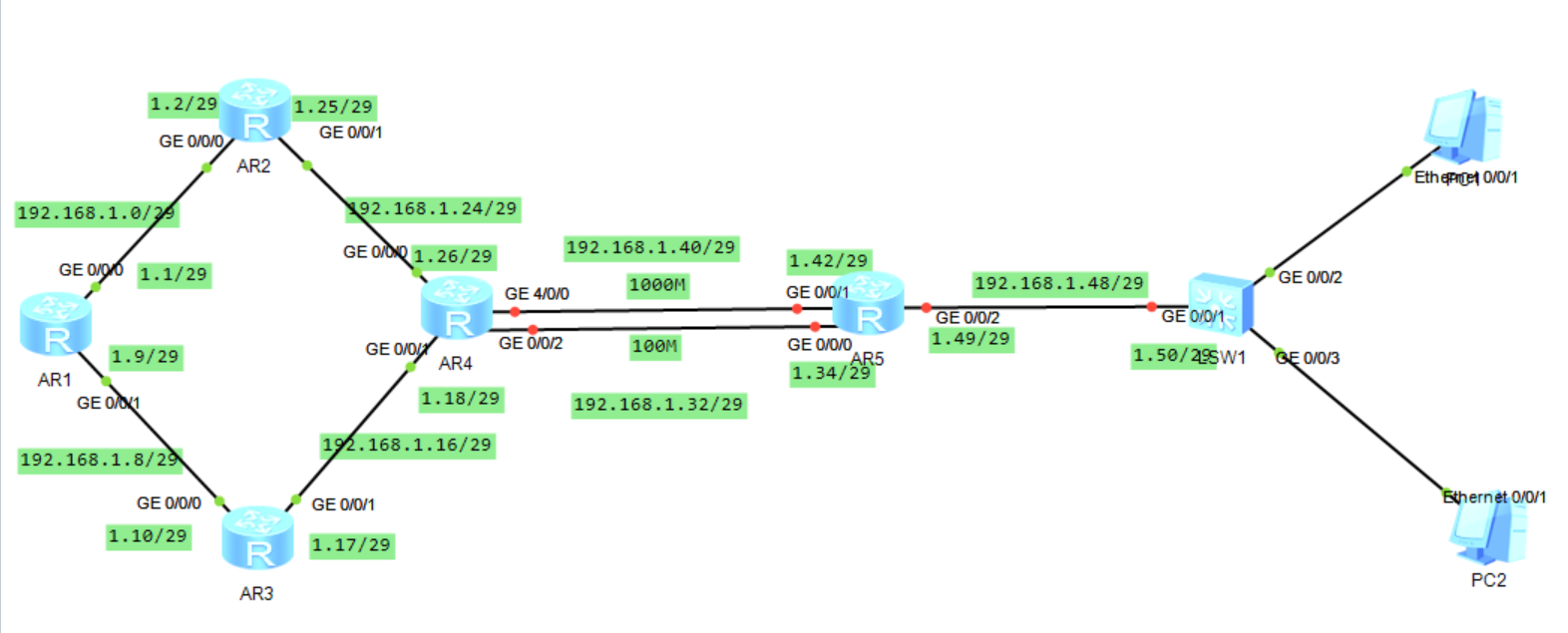 [r5-GigabitEthernet0/0/1]ip address 192.168.1.42 29