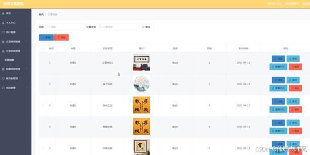 系统管理员可以对用户提交的文章信息进行审核以及删除操作。界面如下图所示: