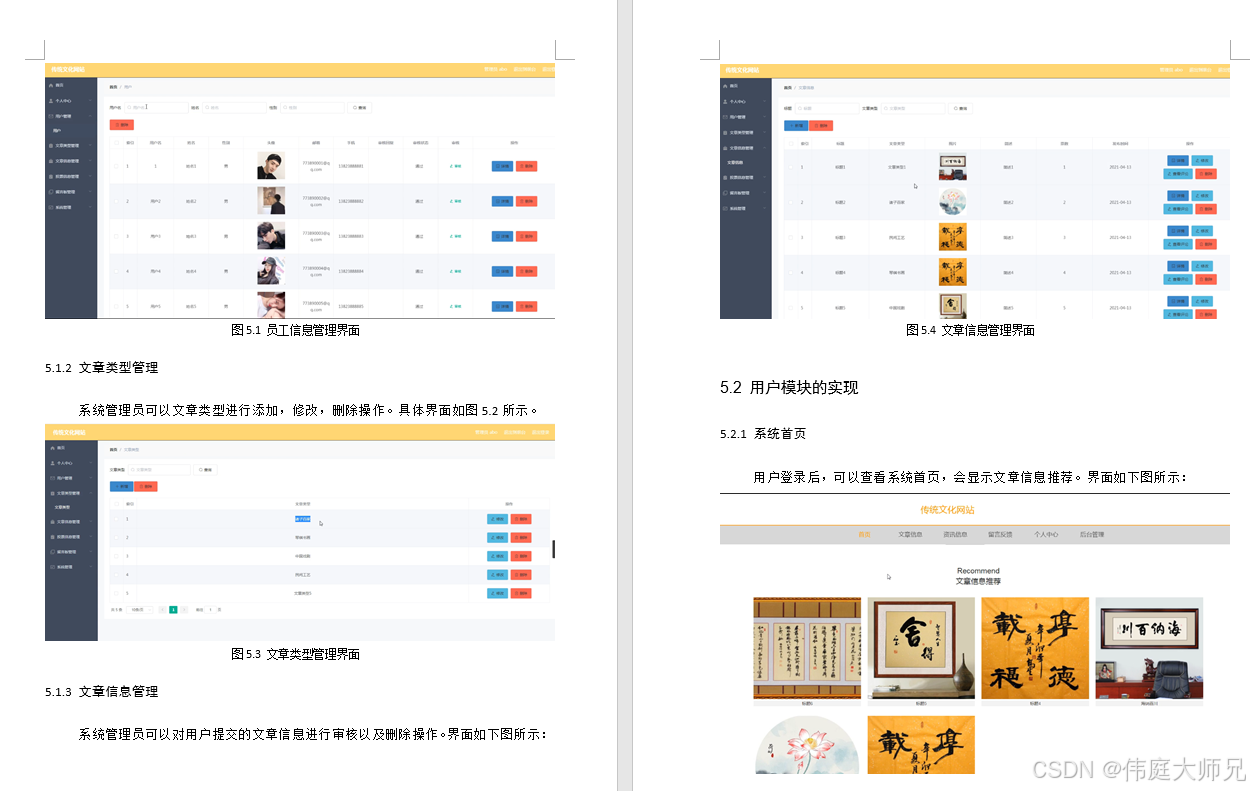 传统文化网站的系统管理员可以员工信息,可以对员工信息添加修改删除操作。具体界面的展示如图5.1所示。